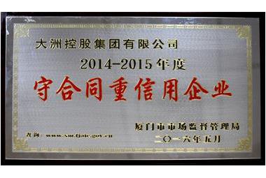 2016年7月27日上午,廈門市2014-2015年度守合同重信用企業(yè)經(jīng)驗交流暨表彰大會于國際會議中心隆重舉行。大洲控股集團(tuán)有限公司榮獲“2014-2015年度廈門市守合同重信用企業(yè)”榮譽(yù)稱號。