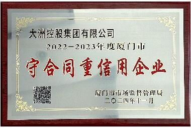 近日,廈門市市場監(jiān)督管理局正式公布了2022-2023年度廈門市“守合同重信用”企業(yè)名單。大洲控股集團(tuán)有限公司憑借自身強勁的企業(yè)發(fā)展實力,卓越的企業(yè)信譽以及完善的合同管理體系,再次榮耀登榜。這也是大洲集團(tuán)連續(xù)21年蟬聯(lián)此殊榮。